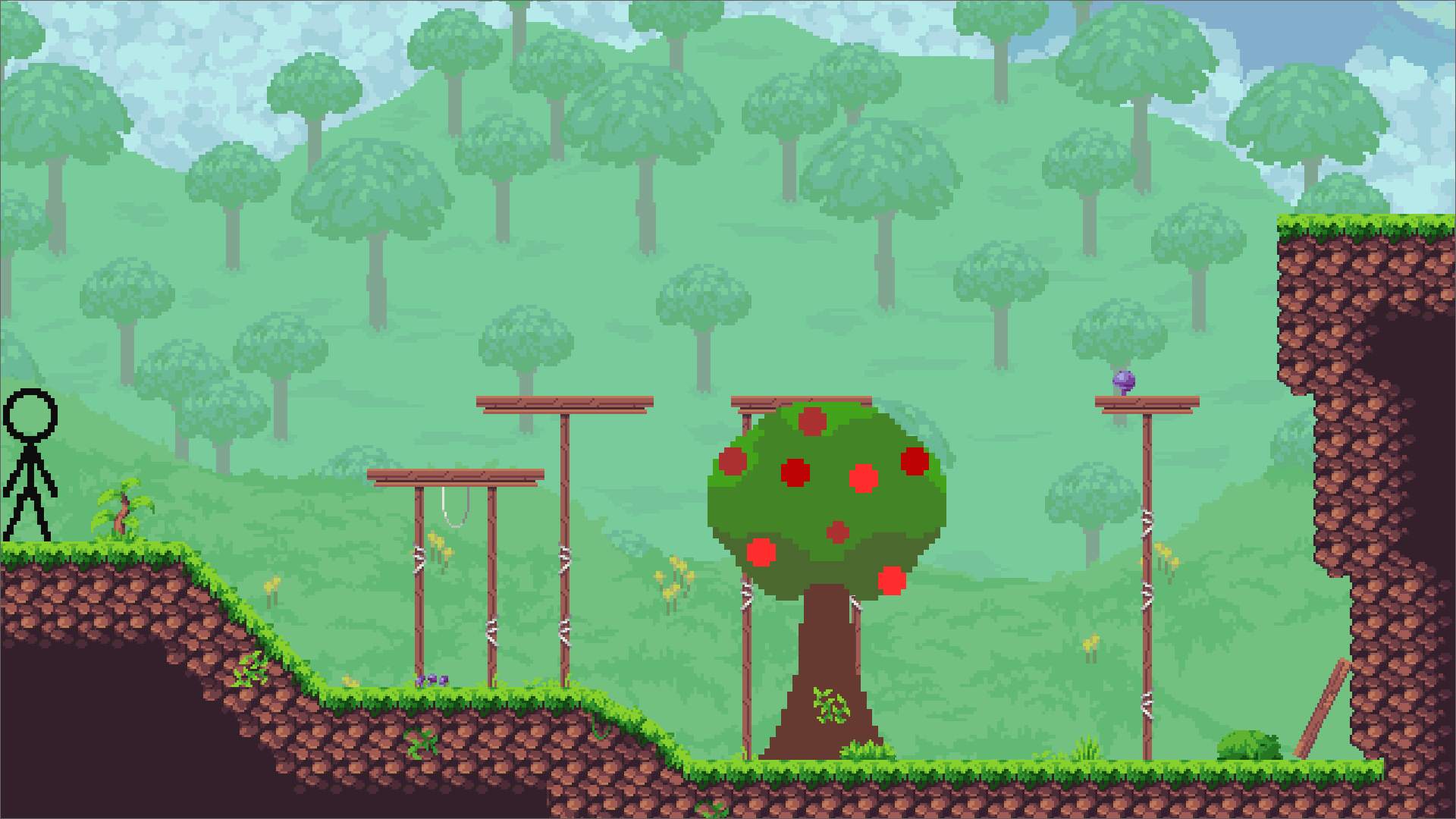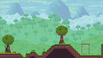 You were sleeping peacefully under a tree, but an apple woke you up. Now you need to get home by jumping over obstacles.