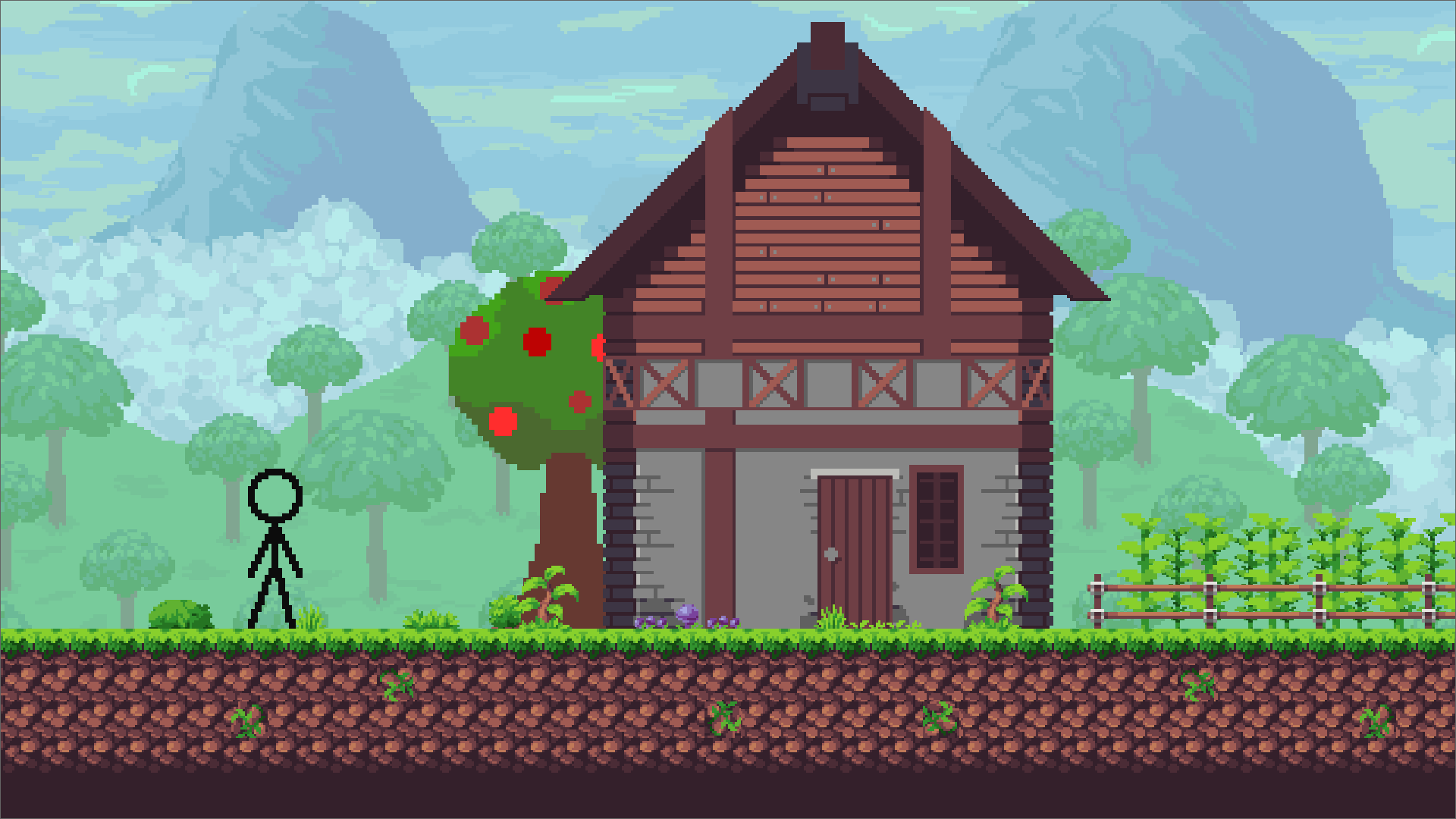 Вы мирно спали под деревом, но вас разбудило яблоко. Теперь вам нужно добраться домой, перепрыгивая через препятствия.